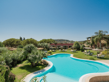 Nice and small resort with three well-deserved stars, perfect for a longer beach holiday on the island but also if you would like to make a stopover in a modern resort in the southeast of Sardinia during a tour.