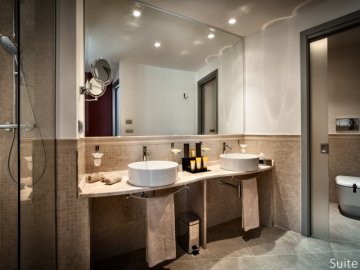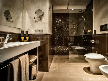 Ma & Ma has a Spa of 800 square metres, a real “wellness temple” where you can enjoy the various facilities such as a magna pool rich in magnesium and kalium, Finnish bio sauna, Turkish bath and showers with waterfalls and cold sprays provided with chromo and aroma therapy, as well as a fitness room and various beauty treatments and massages. The Spa and outdoor baths are free of charge for hotel guests (16+ yrs only).