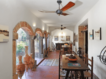 At just a few minutes from the Sinis peninsula and close to Oristano 3-star hotel Lucrezia is located in the heart of Riola Sardo in an historic monastery dating back to the 1700s. It’s like time has stood still here; together with the lush plants and flowers in courtyard the centuries-old trees, well, whetstone, cellar and oven here are all reminders of the past, resulting in an extraordinary atmosphere. The interior of Hotel Lucrezia breathes the same classical style. The reception, the lounge with fire place and the breakfast room have been decorated with antique furniture, paintings, handwoven tapestries and wooden ceilings. You can use the billiard room or find a quiet nook or cranny in the reading room in order to enjoy a nice book. It’s possible to dine in the hotel on request. Hotel Lucrezia has all the ingredients for a wonderful holiday that will make you forget the daily grind!