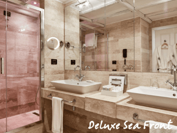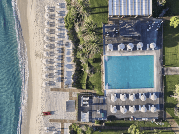The strip of sand in front of the luxury hotel is exclusively reserved for hotel guests. You reach the beach via two staircases that take you directly from the garden to the private beach. Here, comfort is certainly not lacking. There are changing rooms, showers, and toilets. The parasols and sunbeds on the beach are not pre-assigned so you can choose your favorite spot every day. Only the first row has an additional charge.