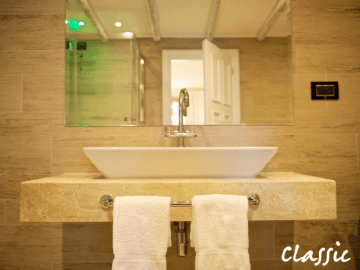 With fifty rooms, La Villa del Re is a relatively small hotel. All spaces are equipped with modern comforts and decorated in an elegant Italian style. You can choose from a Junior Suite by the sea or in the garden, a deluxe room by the sea, a superior room by the sea or in the garden, or one of the Classic rooms with a garden view.