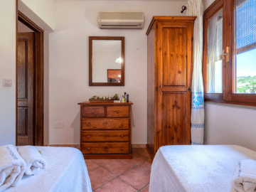 The villa has a spacious porch overlooking the private swimming pool with hydro massage in front. The 2-storey holiday home of 165 square metres can accommodate 10 guests in five different bedrooms. The villa with air conditioning consists of a living room, 4 bathrooms and a well-equipped kitchen with dishwasher. The terrace is provided with a barbecue.
