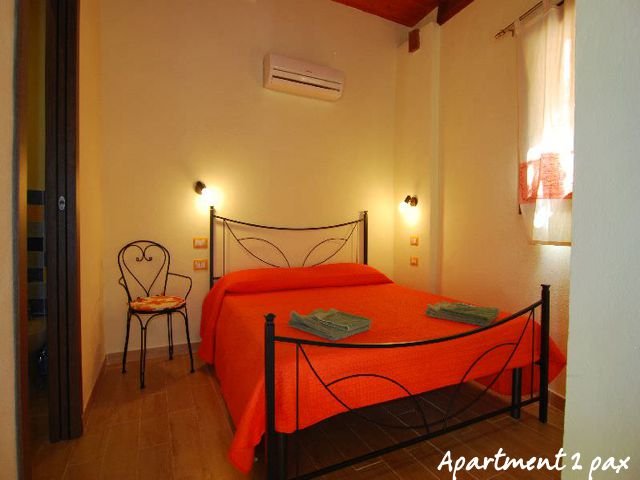 There are 3 types of apartment, accommodating 2 - 4 adults. A baby cot can be placed on request. The studio is perfectly suited for couples. Families can book a 1-, 2- or 3-bedroom apartment. The interior of the basic yet comfortable apartment varies, but every apartment features a kitchen and a bathroom, as well as air-conditioning and a terrace outside.