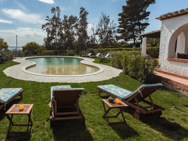 Villa Sandra is located in the charming seaside resort of Torre delle Stelle, set between Cagliari and Villasimius, in a quiet residential area by the sea. The beautifully maintained garden opens directly towards the coast, allowing guests to start the day on the beach and end it with a magnificent sunset over the water.