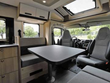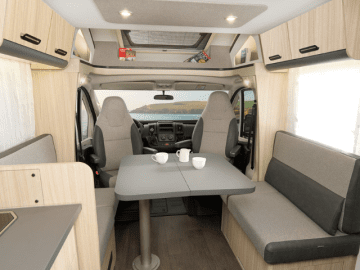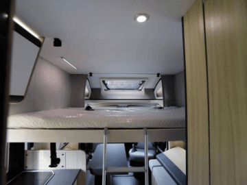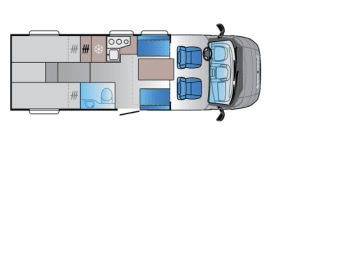 4 seats for driving, 4 sleeping places for overnight stays. Ideal for families or small groups, with a fully equipped kitchen, bathroom, and plenty of storage space.