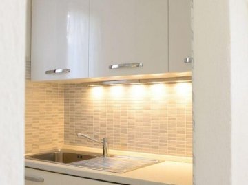The three bedrooms are located in the rear of the house where it stays cooler. Two bedrooms are furnished with a double bed, another with a single bed and another pull-out single bed. For the warm season, the apartment is air-conditioned.