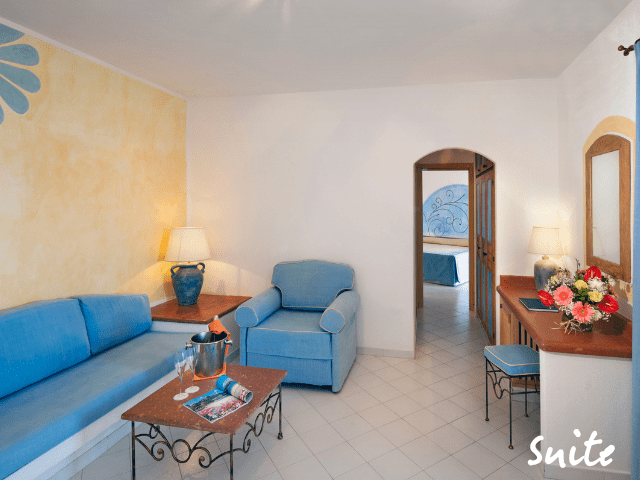 The 4-star superior hotel Il Borgo consists of 105 comfortable rooms located on the ground floor or first floor. All rooms are decorated in a Mediterranean style and have their own private porch with seating arrangement. The hotel has Classic double rooms, Dulxe double rooms, Junior Suites, Family Suites Suites and Senior Suites. Guests staying at hotel Il Borgo can enjoy their breakfast at the terrace of restaurant “La Poiana”, where at night dinner is served as well (buffet-style). If you want to enjoy a romantic evening, the elegant a la carte restaurant “Le Terrazze” might be a nice alternative. For a small surcharge you can dine here while enjoying the stunning view across the bay of Arzachena. A nightcap at the pool bar or piano bar is the perfect way to conclude your day.