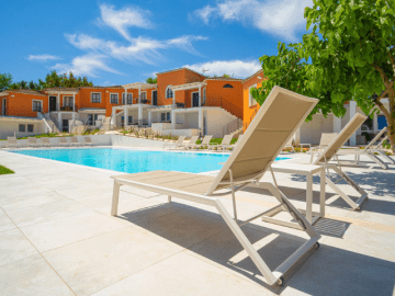 4-star hotel Galanias is located in the hilly landscape in between the mountains and the sea in Bari Sardo. The main building of Galanias Retreat houses a bar and a restaurant with outdoor terrace, where you can enjoy your meals (fixed menu). The accommodation endeavours to serve only “0-kilometre” products coming from the local farmers and fishermen. The pool with Jacuzzi is the heart of the accommodation – the perfect place to relax under the palm and olive trees!