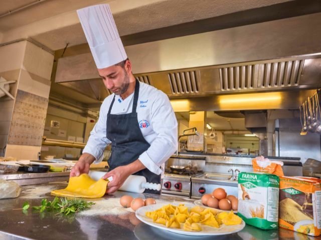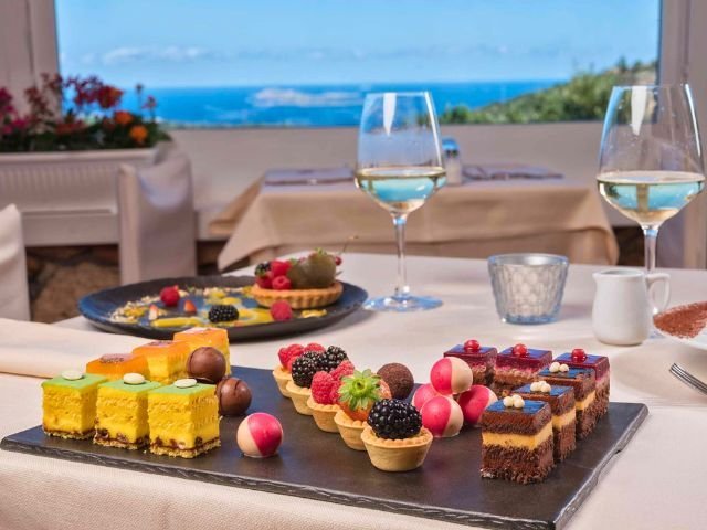 The main restaurant is situated on a panoramic terrace overlooking the islands of Soffi and Mortorio. Breakfast is served here, while in the evening Mediterranean dishes with regional influences are offered.