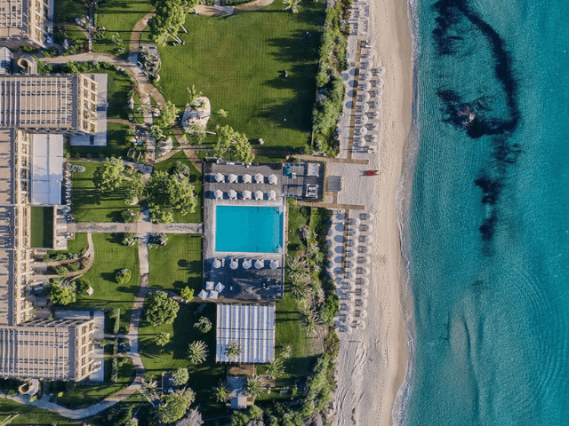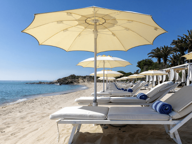 The strip of sand in front of the luxury hotel is exclusively reserved for hotel guests. You reach the beach via two staircases that take you directly from the garden to the private beach. Here, comfort is certainly not lacking. There are changing rooms, showers, and toilets. The parasols and sunbeds on the beach are not pre-assigned so you can choose your favorite spot every day. Only the first row has an additional charge.