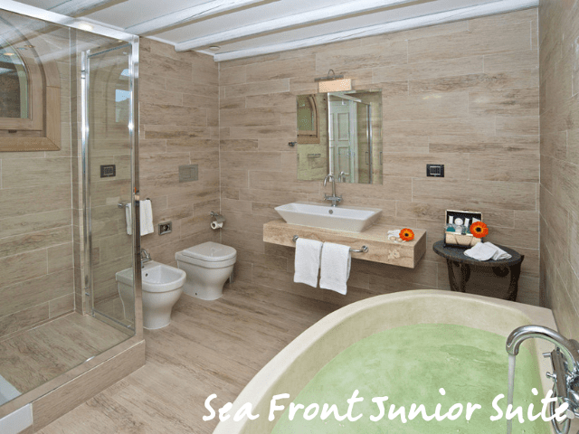With fifty rooms, La Villa del Re is a relatively small hotel. All spaces are equipped with modern comforts and decorated in an elegant Italian style. You can choose from a Junior Suite by the sea or in the garden, a deluxe room by the sea, a superior room by the sea or in the garden, or one of the Classic rooms with a garden view.