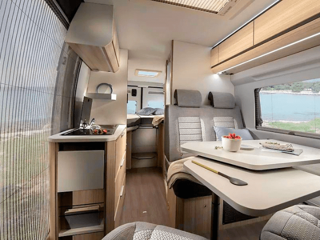 The new Adria camper van impresses with a modern and functional interior design, a Truma heating system, an 84-liter refrigerator, a 100-liter fresh water tank, swiveling front seats, and much more.