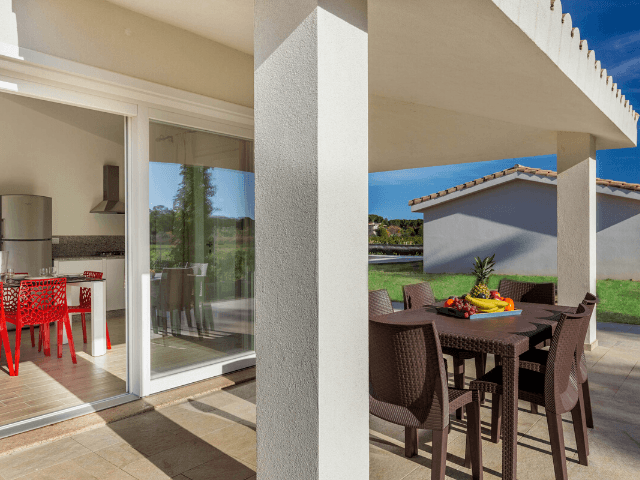 Situated at sea, spacious villas can accommodate up to 6 people, with garden and pool.